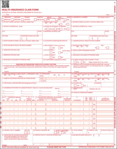 CMS-1500 2-Part - Continuous (White/White Paper Sequence) (NEW VERSION 08/05) 1000 ONLY: $55.00 compare @ $88.99